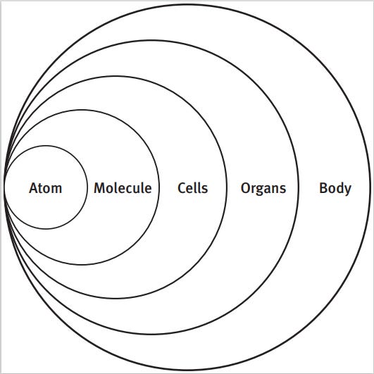 One of the central insights from Wilber’s audacious attempt to create a theory of everything was the process of “transcending and including.” Like a Russian doll, every level of greater complexity both transcends the limitations of the previous level, but also includes the less complex structure. For example:
