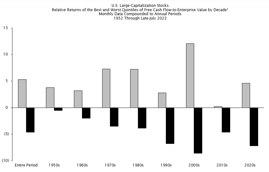 For investors: Our friends at Empirical Research Partners have long stressed how free cash flow metrics have among the best performance of any other factor over the last 7 decades of data. They have also argued that this is now especially true over longer holding periods. Long term focus on free cash flow is a cornerstone of our own investment strategy at Sapient.