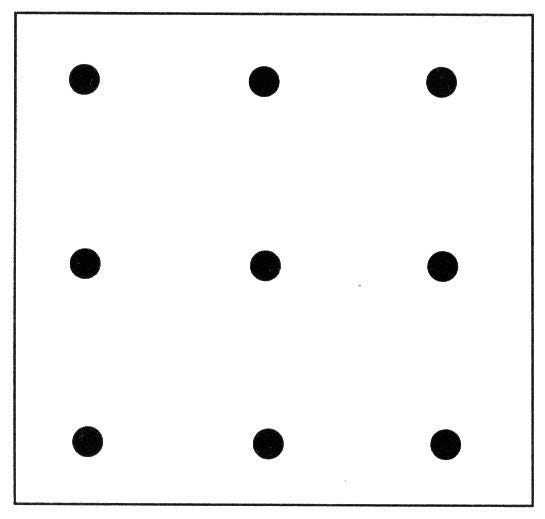 The fundamental skillset of a shamanoid is the ability to see beyond a limiting frame. Cognitive science professor John Vervaeke explains this intuitive capacity in terms of the Nine Dot Problem.1 The goal of the puzzle below is to link all nine dots using four straight lines or fewer, without lifting the pen and without tracing the same line more than once. Try it yourself, the solution is at the bottom.2