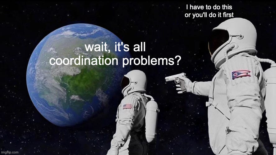 Whether it’s war, poverty or environmental destruction, it’s pretty hard to find a problem that can’t be solved with better global coordination. The optimistic take is that zero-sum games seem pointless in a state of greater integration where positive-sum games are possible. The primary obstacle to human cooperation has been the cognitive constraint on the number of people we can know and trust. But imagine how quickly the prisoner’s dilemma would break if all participants are increasingly telepathic.21 More generally, greater integration brings an increased sense of unity, but it also brings more subtle individual power. A true win-win. Throughout human history, the winners have been those who can cooperate at greater scale than the losers.