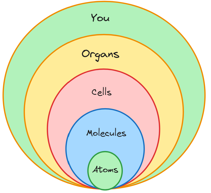 Complexity science argues that the universe is evolving towards a state of complexity: increasing differentiation and integration.2 My understanding of (currently heretical3) Integrated Information Theory (IIT) is that the more integrated a system is, the more conscious it becomes. An atom is a self-contained whole (a holon), a cell is a series of atoms and we are a series of cells. We embody a high level of integration, enhancing our consciousness or perhaps our capacity to ‘receive’ consciousness. The more interconnected the different parts of a system are, the more conscious it becomes.
