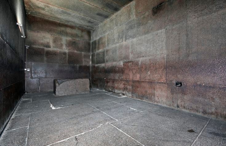 What’s factually true is that the King’s Chamber is a rectangular room built entirely of massive Aswan granite blocks and located about 43 meters above the pyramid’s base. It contains a lidless granite sarcophagus that is too large to have been moved in after construction, indicating it was installed during the building process. If it was indeed intended as a burial site, it’s interesting that no inscriptions or burial artifacts were found inside. Acoustic measurements show the chamber and sarcophagus have strong natural resonant frequencies.